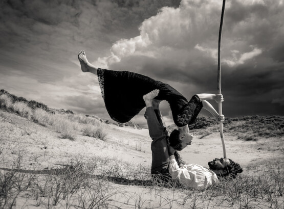 Ivy (edera in italiano) è il viaggio di due corpi (e un bastone di legno) che ribaltano ed esaminano idee di equilibrio e confine: luce/ombra, solido/fluido, passato/presente/futuro, civiltà/natura per ricordarci che siamo sempre intrecciati gli uni agli altri. Il groviglio di corpi, ispirato ai pattern e alle proprietà del mondo delle piante, esiste come una finestra aperta verso il ripristino dell’equilibrio tra uomo e natura.