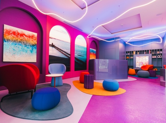 È un ambiente capace di ospitare le persone, ma anche la bellezza e l’arte, con diverse aree per accoglienza, informazioni, relax, e anche una membership lounge per avere maggiore privacy. Tutto il progetto – dello studio Lombardini 22 di Milano - è caratterizzato da linee pulite, elementi ad arco e colori molto pop, accesi e pieni, oltre che da arredi e complementi di design, tra cui anche alcuni pezzi iconici di Moroso, e un’accurata selezione di oggetti e libri d’arte, di fotografia, di grafica e architettura.